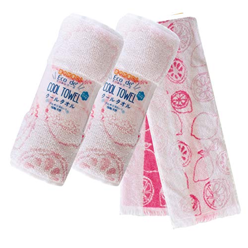 クールタオル 冷却タオル Eco de クール 濡らさなくても冷たい 約16cm×90cm 2枚組 セット レモン ピンク (冷感 冷