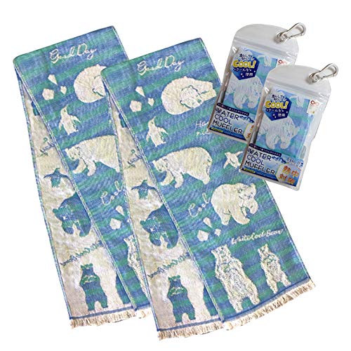 子供用 クールタオル 冷却タオル 接触冷感 クールマフラー ガーゼタオル 携帯ケース 付き シロクマ ブルー 16c