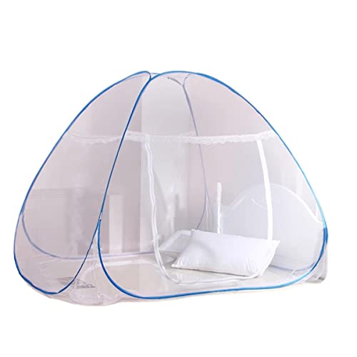 蚊帳、1ドア、ワンタッチ (セミダブル(1.2m), 青)