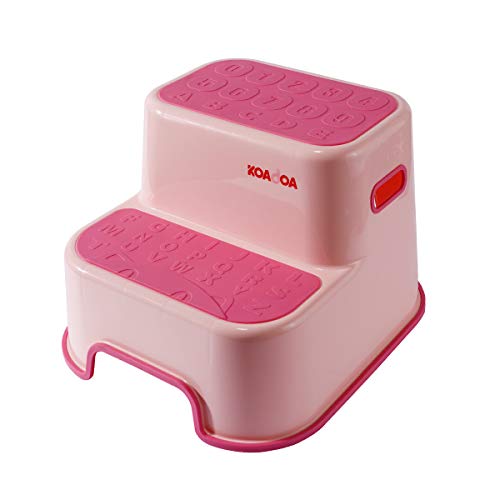 KOADOA 踏み台 子供 ステップ台 2段 幼児 大人 ステップスツール キッズ トイレ お風呂用 滑り止め (バラ色)