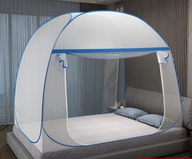 蚊帳、1ドア、ワンタッチ (1ドア ダブル(1.5m), 青)