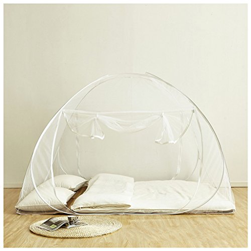 蚊帳 ワンタッチ モスキートネット ベッド 密度が高い 折り畳み 両側ドア設計 幅150cm 長さ200cm 底生地付き 四
