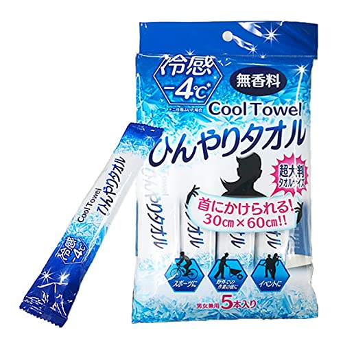 コーヨー化成 冷感-4[度] ひんやりタオル 無香料 5本入 個別包装 1パック410円 首にかけられる 超大判タオル