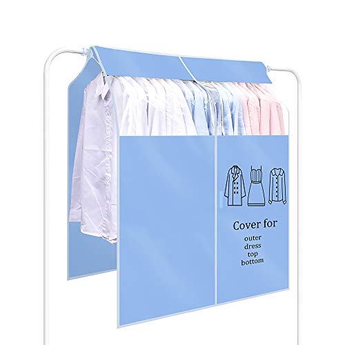 OTraki オックス製 ハンガーラック カバー 90cm幅 110cm高さ 水色 透明窓付き 洋服カバー ロング 防虫 防カビ パイ