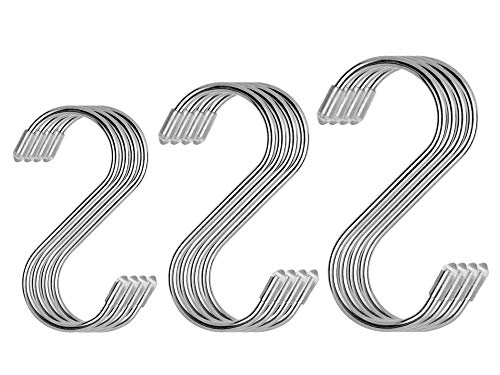 Sフック、12ピース吊りフック、ステンレス鋼S形吊りフックハンガー家庭用台所用品、バスルーム、寝室、鍋、