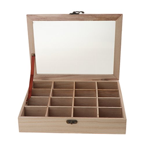 木製 収納ケース ジュエリーボックス アクセサリー収納箱 小物収納 紛失防ぐ 16グリッド