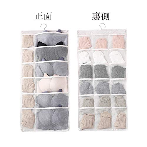 吊り下げ収納袋 両面下着収納 30個ポケット 壁掛け式 靴下 小物 収納 水洗い可能 大容量…