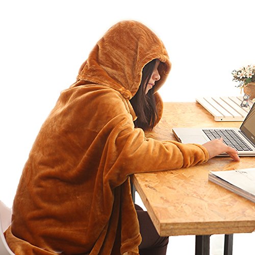 IKENOKOI 着る毛布マイクロファイバーフランネルふわふわポンチョボタンジッパー構造仕事勉強昼休み防寒学生