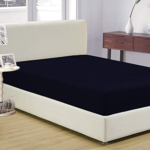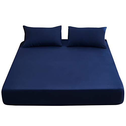 ボックスシーツ ベッドカバー 周囲ゴムフィット式 綿100% 夏すずしい 冬あったかい 無地 ネイビー クイン 160
