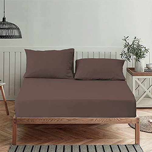 ボックスシーツ セミファミリー・ブラウン 吸水速乾 シーツ ベッドカバー 220x200cmのサイズ 着脱簡単 マチ部