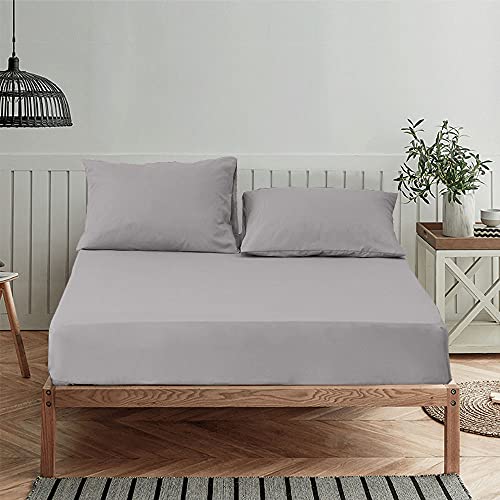 ボックスシーツ セミファミリー・グレー 吸水速乾 シーツ ベッドカバー 220x200cmのサイズ 着脱簡単 マチ部分