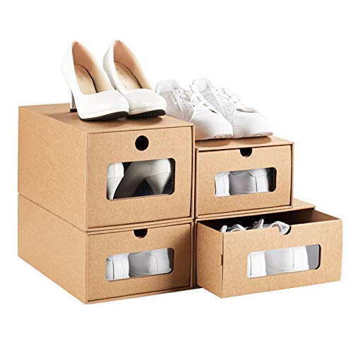 4枚セット 引き出し式シューズボックス 靴収納ボックス 透明 多機能 小物 収納箱 ブラウン 積み重ねる可能 (
