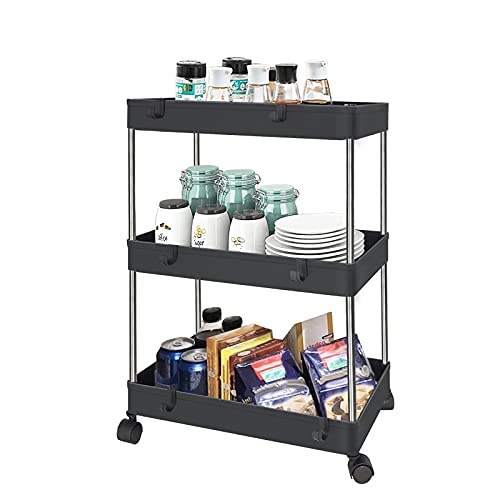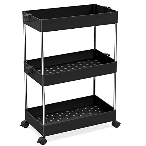 キッチンワゴン 3段キッチン収納 ワゴン キャスター付き ワゴン バスケットラック 移動式 キッチンラック 収