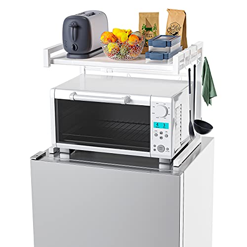 BESONTレンジ上ラック スチールラック 幅(39-54cm)伸縮式 荷重30kg レンジ台 キッチン収納棚 (ホワイト S)