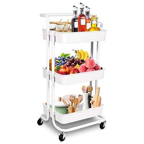 キッチンワゴン EXQUI 収納ワゴン キャスター付き 3段 キッチン収納 大容量 移動式 キッチンラック 組立簡単 台