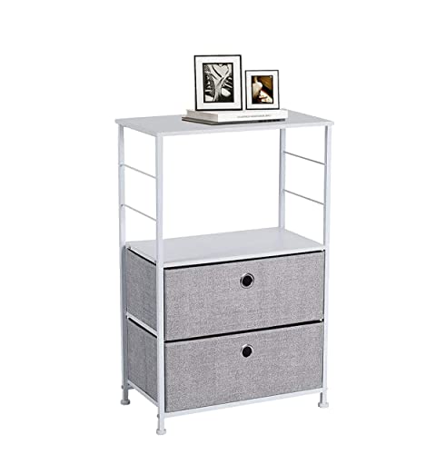 LINKLIFE 2段2箱木天板付き布製引き出したんす ファブリックボックス 収納ボックス付きラック スチールフ