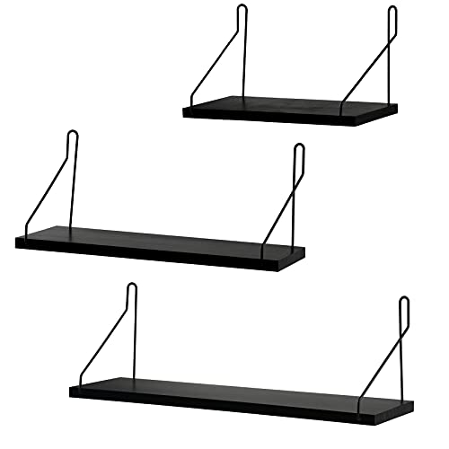 YOYAI 壁掛け棚 ウォールシェルフ 飾り棚 木製 DIY おしゃれ 壁面収納 穴あけ不要 簡単取り付け (ブラック, 30c