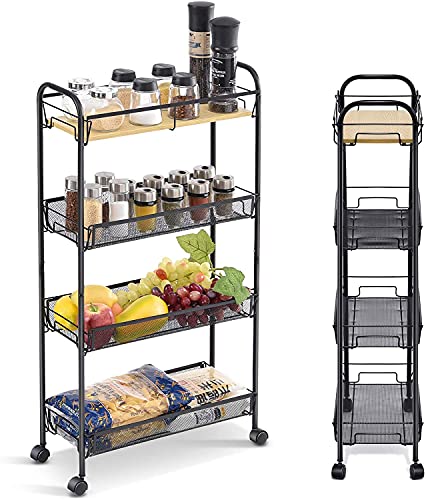 キングラック キッチンワゴン 収納カート 4段 隙間収納 19cm スリム キャスター付き 収納ラック 小物 食品 調味