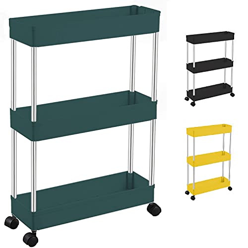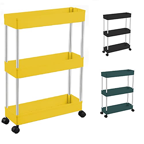 キッチン すき間収納 キャスター付 スライドできる,キッチン収納 (黄色, 12 * 38.5 *67.5 CM)