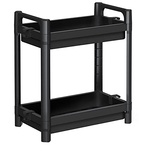 SPACEKEEPER シンク下収納 2段 ラック キッチン収納 組立簡単 フック付き 収納棚 洗面台 キッチン バスルーム用