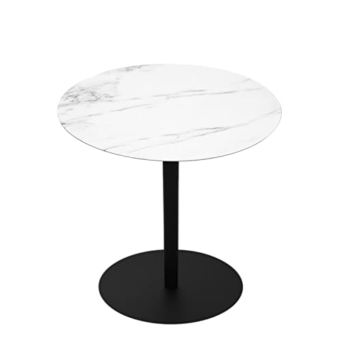 Leisure Space 40.6cm丸い大理石仕上げテーブルトップと黒い粉末コーティング仕上げフレームを備えた丸い金属テ