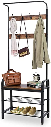 CJMM 3-in-1コートラック クローク シート付き靴ラック 8つの取り外し可能なフック付きハンガー ベンチ 2つのグ