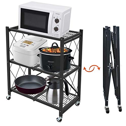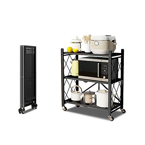 DEWEL レンジ台 キッチン収納ラックワゴン 折りたたみ棚 シェルフ棚 キャスター付き 食器棚 新設計 用途広い