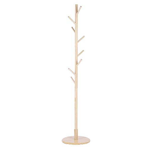 布ハンガーツリー、固体耐久性組み立て木製コートハットスタンドツリージャケット布垂直ハンガーラック8フ