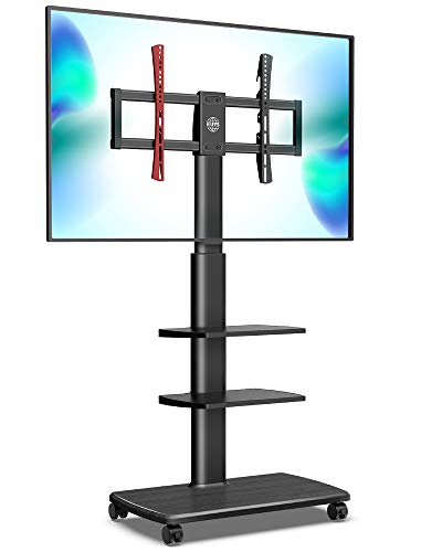 FITUEYES テレビスタンド 32~65型対応 キャスター付き 高さ角度調節可能 移動式 木目調 ブラック 耐震 中棚無階