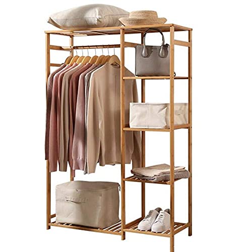 uyoyous ハンガーラック 天然竹製 4段棚 洋服掛け ラック ワードローブ クローゼット 幅90×奥行30×高さ130cm 洋服