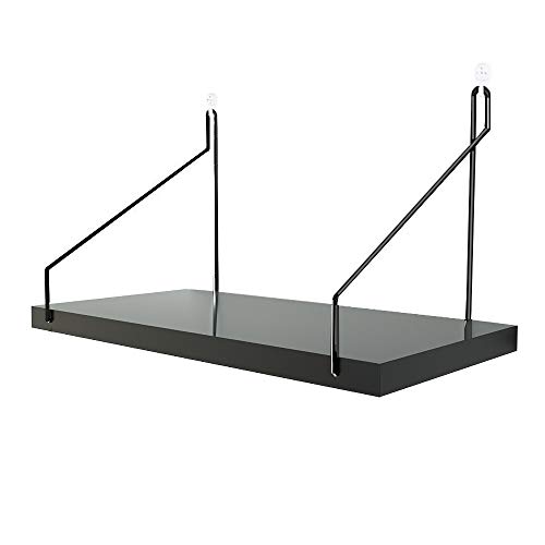 ウォールシェルフ 天然木 壁掛け棚 取付簡単 本棚 DIY 木製 飾り棚 シンプル ワイヤー付け 収納便利 (ブラック,