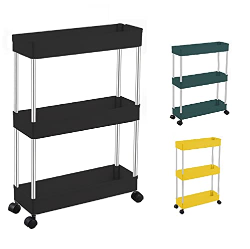 キッチン すき間収納 キャスター付 スライドできる,キッチン収納 (ブラック, 17 * 38.5 *67.5 CM)