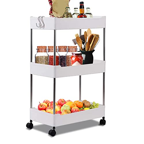 ラック キッチン 棚 3段 キャスター付き 収納カート ローリングラック 40.5×奥行22.5×高さ64.5cm 白い
