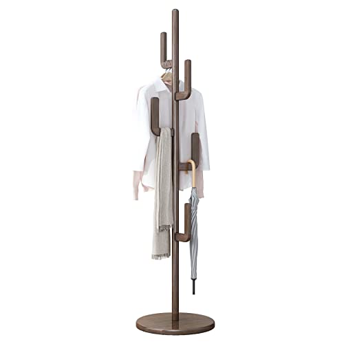 KungFuWood ポールハンガー 木製 衣類収納 ぽーるはんがー 省スペース コートハンガー 6個のフック付き 耐荷重 90