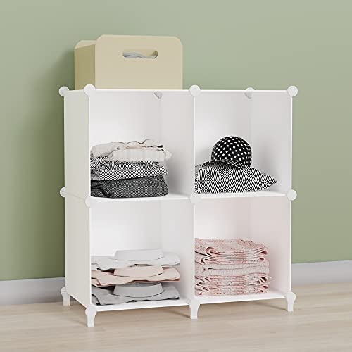 SIMPDIY 本棚 大容量 整理棚 ワイヤー収納ラック 組み立て式 衣類収納ボックス 便利な ワードローブ - 白(4ボッ