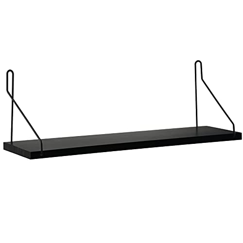 YOYAI 壁掛け棚 ウォールシェルフ 飾り棚 木製 DIY おしゃれ 壁面収納 穴あけ不要 簡単取り付け (ブラック, 50c