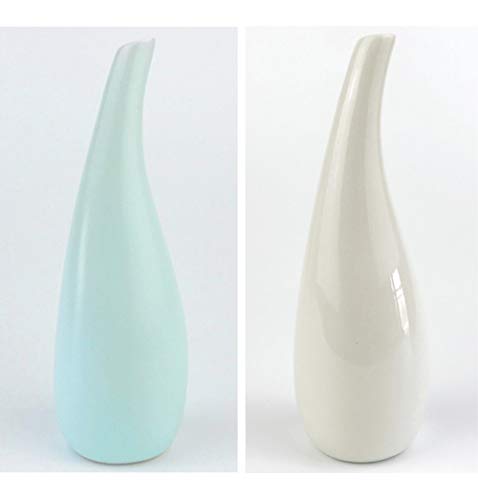 フラワーベース ミニ花瓶 花器 陶器 2色セット (小 - 6x18cm, 白 + 青)