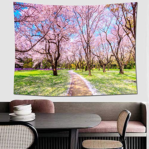 Hakona 自然風景 桜のタペストリー 壁掛け 桜並木中の小道 美しい背景布 布ポスター 多機能壁掛け 簡単撮影用
