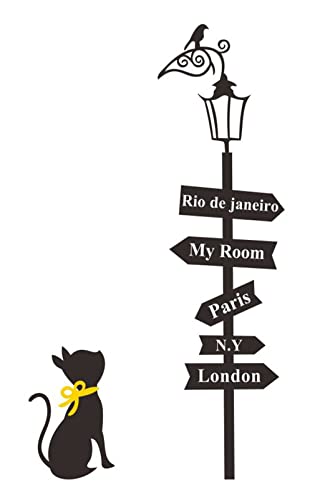 Chirstseason ウォールステッカー 猫と街灯 黒猫 鳥 道標 モノクロ 黒 インテリア 店舗装飾 リビング 玄関 廊下 壁