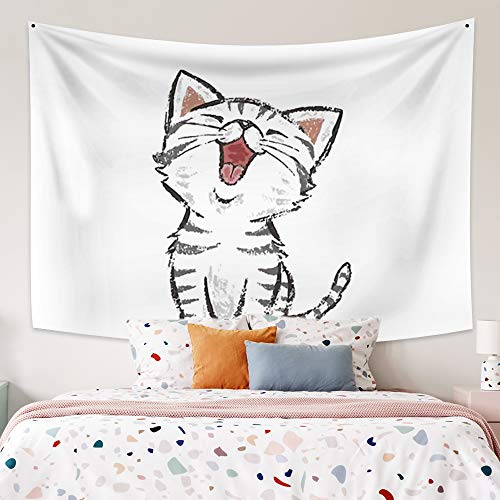 Qinunipoto タペストリー 可愛い 猫 笑う 猫ちゃん 150x100cm 吊り布 壁の装飾 アート 多機能布 大判 インテリア ア