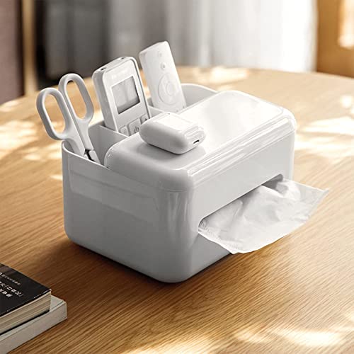 ティッシュケース リモコン 収納 プラスチック ホワイト サイズ19*15*11.6cm 多機能 小物入れ卓上収納 おしゃれ