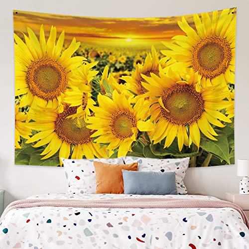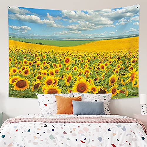 Qinunipoto タペストリー ひまわりの花 黄色い 花畑 150x100cm 吊り布 壁の装飾 アート 多機能布 大判 インテリア ア