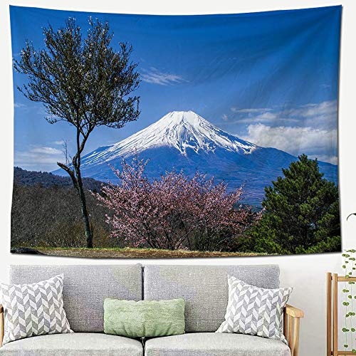Bennyue 富士 自然風景 タペストリー 壁掛け 和風 美しい桜の木 山 青い空 おしゃれ インテリア 布 ポスター 多