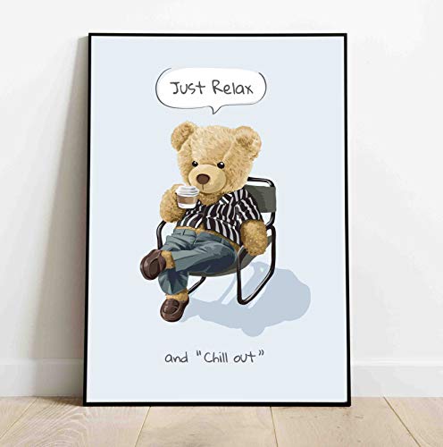 かわいい リラックス テディベア モダン 北欧 ポスター, クマさん アニマル おしゃれ インテリア イラスト ウ