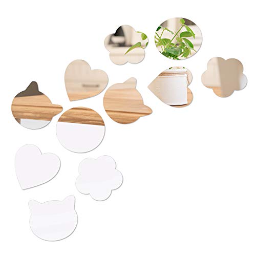 AHANDMAKERミラーウォールステッカー, 120個のアクリルラブハート, ラウンド, 花, 家の居間の寝室の装飾のための
