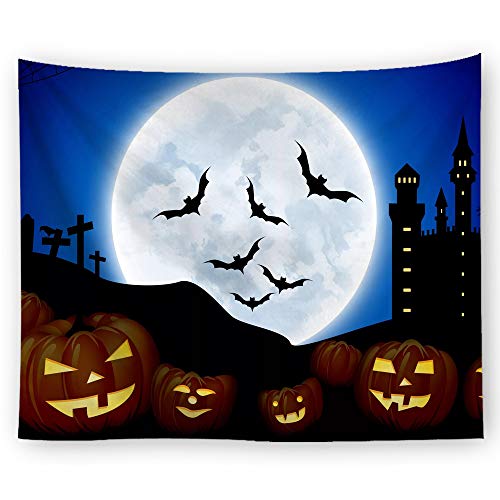 e-Home ハロウィン タペストリー 大きな月 こうもり コウモリ 150×100 cm 壁飾り ハロウィンタペストリー 洗濯バ