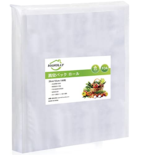 真空パック 袋 20X25cm-100枚 Hanolly PA+PE素材 エンボス加工 真空パック機専用抗菌袋 鮮度長持ち 食品保存 低温調