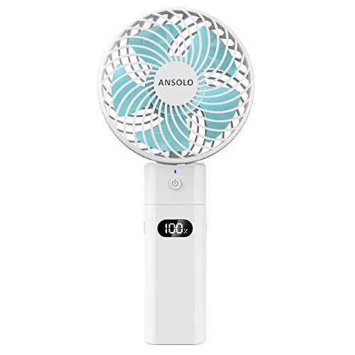 ANSOLO 携帯扇風機 ハンディファン 充電式 手持ち扇風機 小型 ミニ LEDディスプレイ 大容量5200mAh 折りたたみスタ
