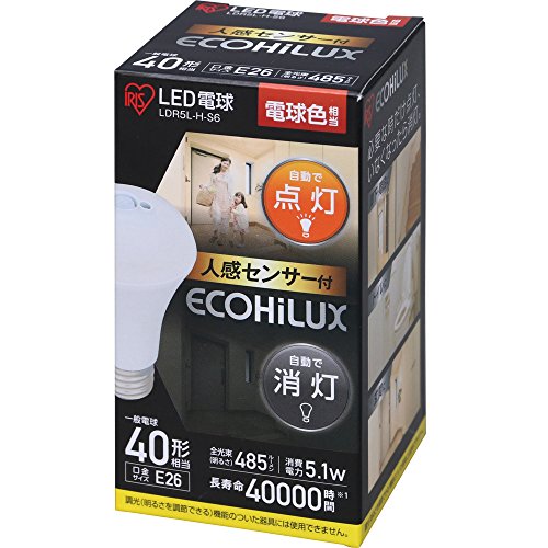 アイリスオーヤマ LED電球 人感センサー付 口金直径26mm 40W形相当 電球色 LDR5L-H-S6