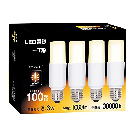 T形タイプ LED電球 E26口金 T形 100W形相当 8.3W 電球色 2700K 1080lm 全方向タイプ 電球形蛍光灯 EFD25・EFD15代替推奨 断